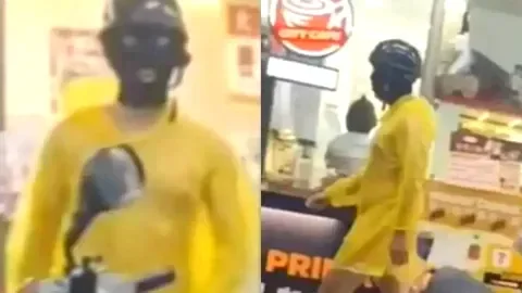 ชายlปลือยกาย สวมหน้ากาก ใส่เสื้อกันฝนสีเหลือถูกจับแล้ว
